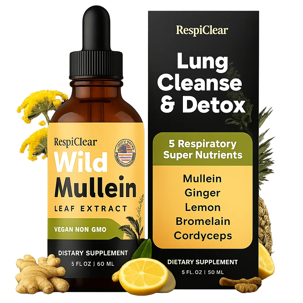 RespiClear is a natural lung support formula designed to help improve breathing by addressing the probable cause of lung discomfort: stuck mucus. Over time, pollution and harmful environmental elements contribute to mucus buildup, making it difficult to breathe clearly. This formula may work to break down stubborn mucus, flush it out of the airways, and support overall lung function. With powerful ingredients like mullein, bromelain, ginger, lemon extract, and cordyceps, RespiClear might help you breathe more freely, reduce coughing, and support long-term lung wellness.